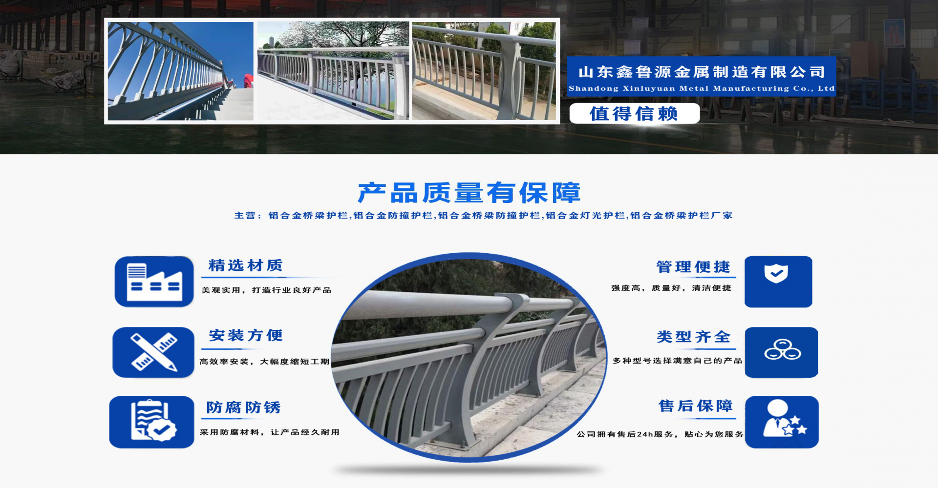 山東鑫魯源金屬制造有限公司主要經營:鋁合金橋梁護欄,鋁合金防撞護欄,鋁合金橋梁防撞護欄,鋁合金燈光護欄,不鋁合金橋梁護欄廠家,環波梁橋梁護欄,環波梁防撞護欄。質量可靠、經濟實用的顯著特點。公司為客戶提供可靠售后保障,堅持“以品質立足、服務求發展”,愿與各界朋友精誠合作、攜手發展!  服務優勢:真誠的服務理念、完善的服務體系。公司專業力量充足;工程案例眾多、從業經驗豐富;公司以可靠質量的產品,合理的價格,完善的售后服務,能夠滿足市場各個企業的需求?! ∑髽I精神:執著追求 持續創新執著追求,就是堅持不懈、堅定從容,專注于自己的事業,把能做的事情做好,不斷克服困難、把握機遇,贏得未來。  持續創新,就是生命不息、創新不止,通過持續實施技術創新、管理創新、市場創新,獲取持續的競爭優勢。...